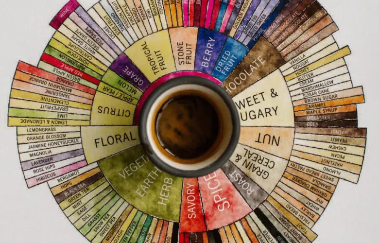Dit smaakwiel kan jou helpen om geuren en smaken van koffie te omschrijven. Het proeven en benoemen van alle smaken en aroma’s vraagt oefening en ervaring, dus laat je niet uit het veld slaan wanneer je alle specifieke smaken ziet. Om te beginnen met proeven kun je je als eerste richten op de basissmaken. De basissmaken van koffie zijn: fris fruit, zoet fruit, chocola, noten, kruiden en bloemen.