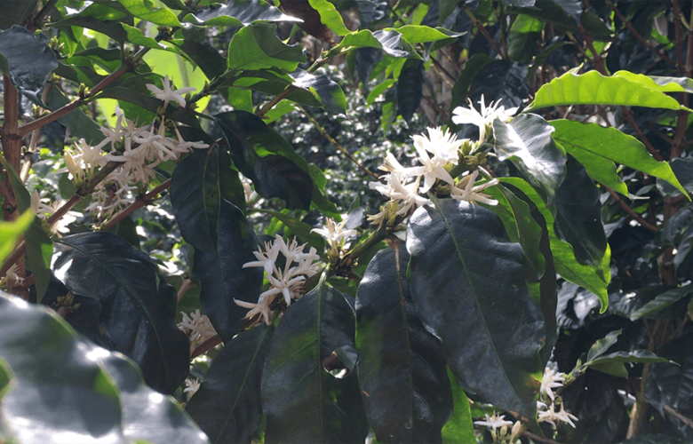 Een witte bloem is de basis voor jouw kopje koffie. De bloemen verspreiden een zoete geur, een beetje jasmijn-achtig. Na de bevruchting van de bloem vormt zich langzaam de groene koffiebes.