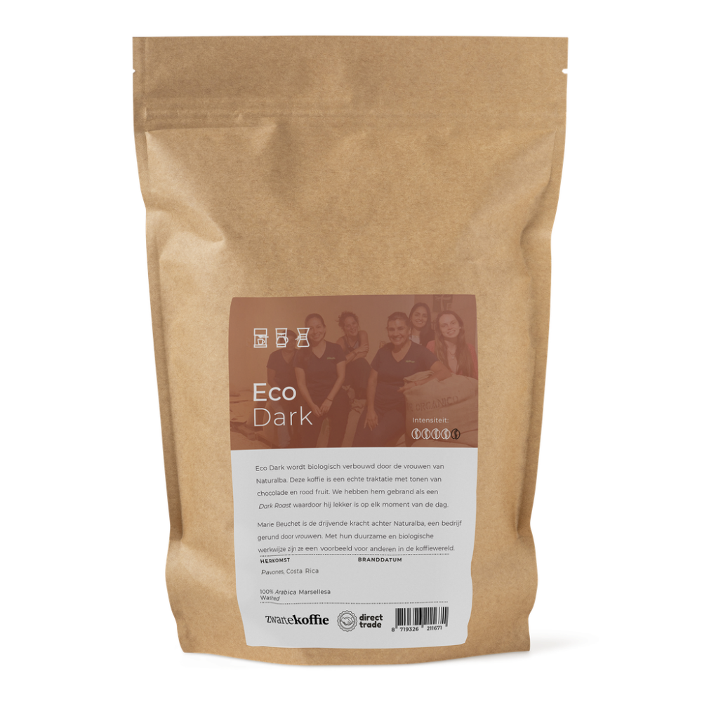 De Eco Dark is een lekkere volle koffie met een heerlijke nasmaak door zijn donkere branding. Eco Dark is biologisch verbouwd. Dark Roast, maar niet te donker, zodat de smaak van de koffie overeind blijft. Bewust duurzaam genieten die je met deze bijzondere koffie.